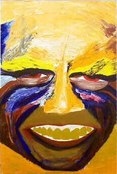 | Yule Gunderson H36 x W24 inches 91cm x 61cm Dated 11-1-95 Price £50 $70 Acrylic on hardboard Photo by Doug Lowe. Like 2.08, I was finding my way . How to express the character through form and colour. How representational must I go. How to use the colours, to break up the features. I was finding that getting the eyes and mouth right were critical to the overall success of the picture. I have to leave the detail in the eyes and mouth to the end. I find this to be the case in every picture that I have painted. If I try to finish eyes or mouth before the rest of the picture, I always end up changing their colours and general appearance. |
